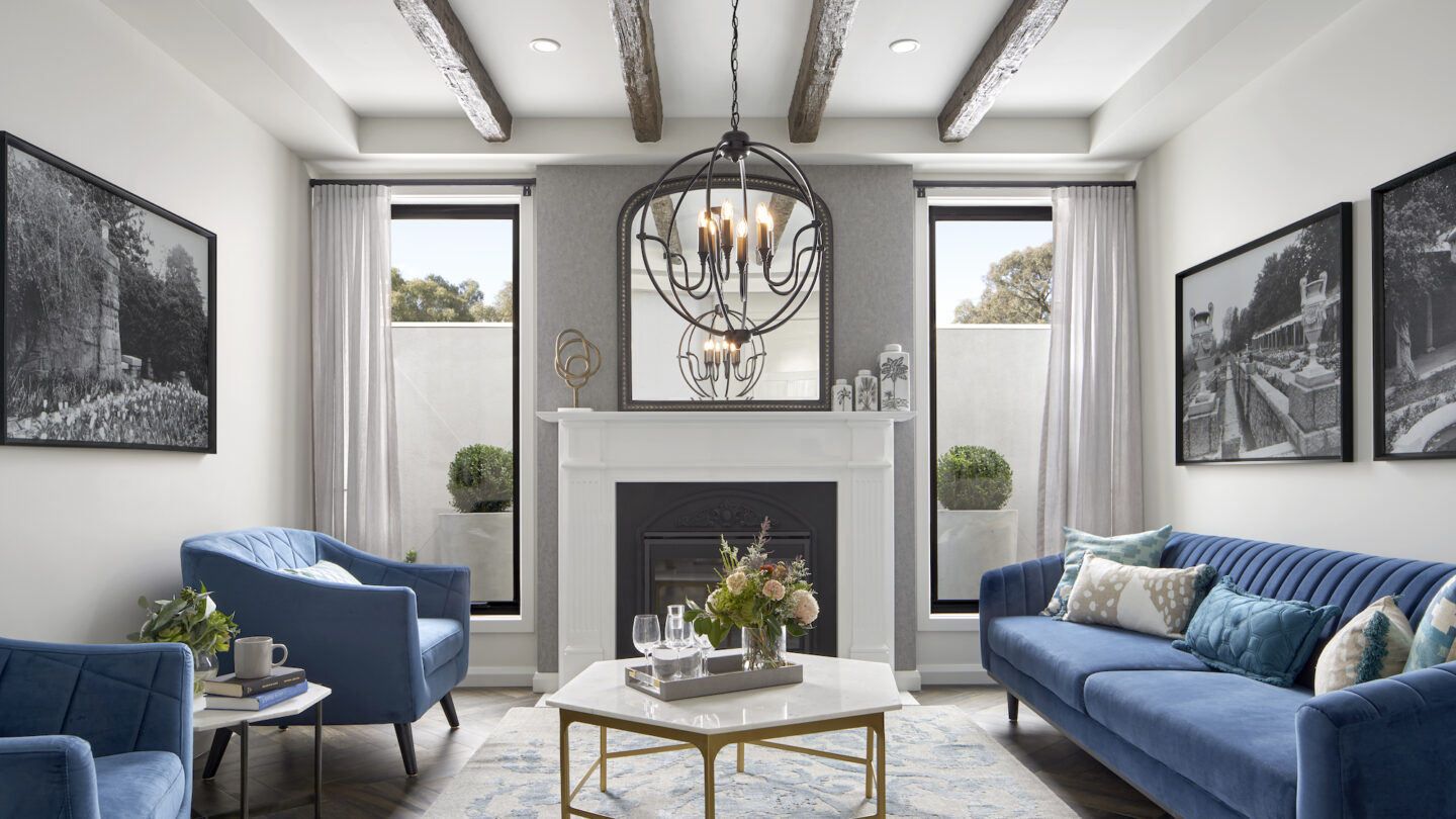 What really sets this display apart from other display homes is its incredible façade. Boutique’s Arcadia façade is not something you come across often and it’s not something that’s easily forgotten. The Riviera 32 in the Rathdowne Estate in Wollert delivers vintage classicism enveloped in modern design. This style is carried throughout the house, with carefully chosen textures and colours to tie everything together. The exposed beams and fireplace in the living area provides a comfortable, sophisticated take on a traditional living room and set the tone for the rest of the home.